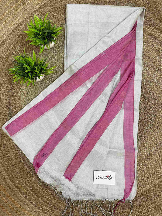 Linen Saree with Pink Zari - Purple Silver | Desi Aadat