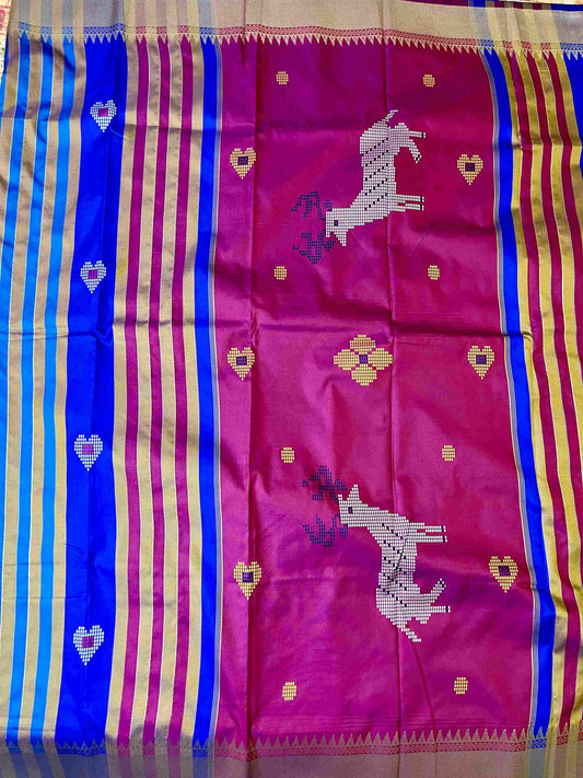 Semi Katan Kalakshetra Silk Saree Deer Design – Royal Blue | Desi Aadat